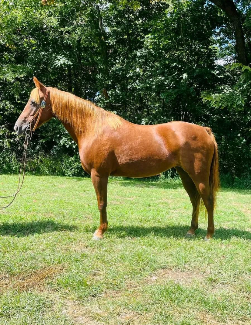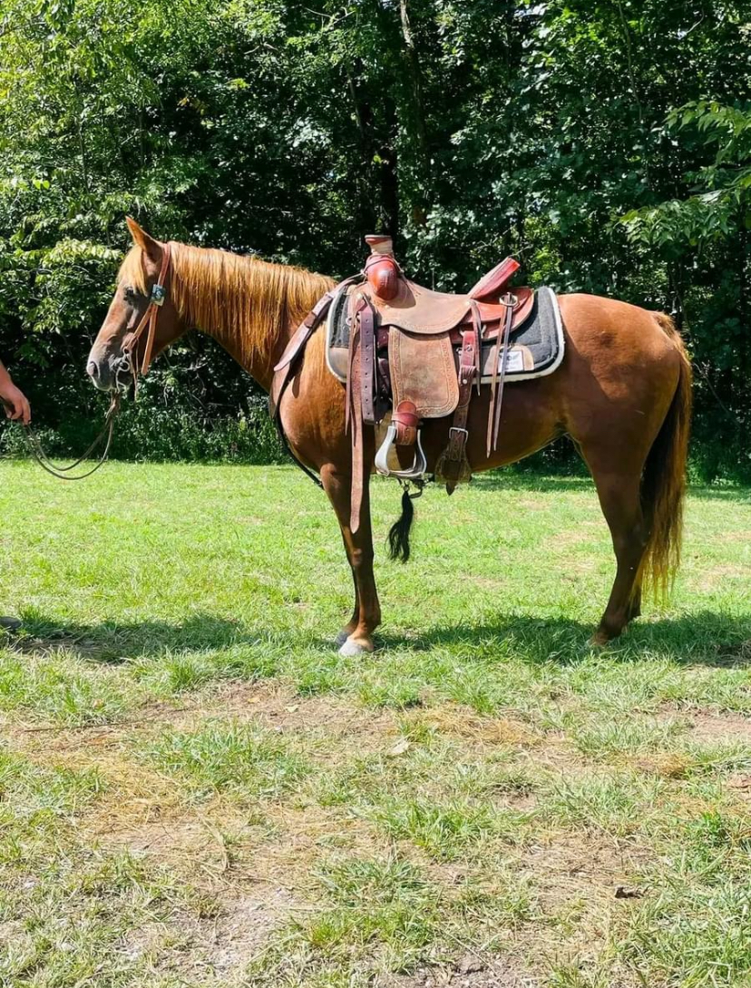 Tina is a 6 year old, Sorrel Grade Quarter Horse Mare who stands at 14.3 hands. She is nice, stout made and a gentle mare. If you know a little about riding you should get along with her.